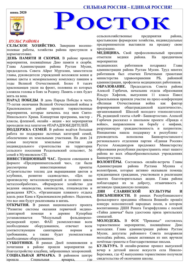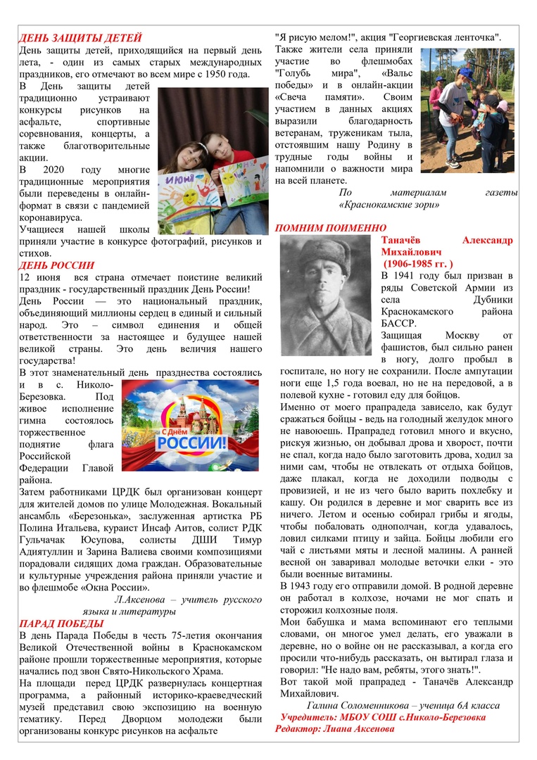 Школьный информационный лист Росток. Июнь 2020