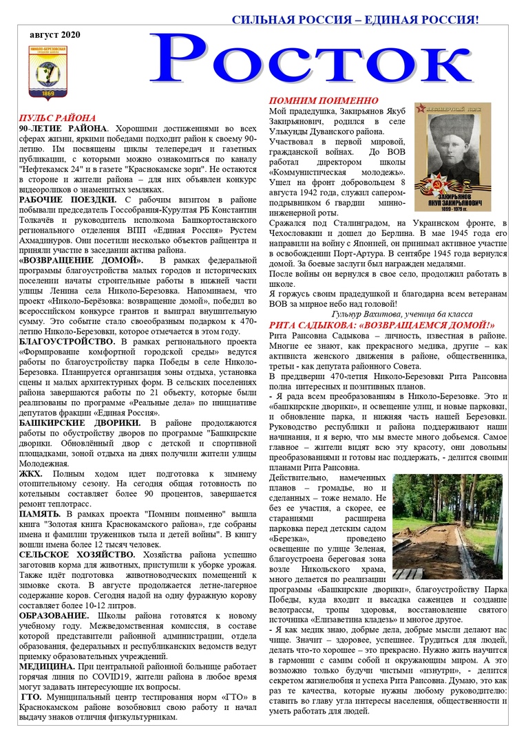 Школьный информационный лист Росток. Август 2020